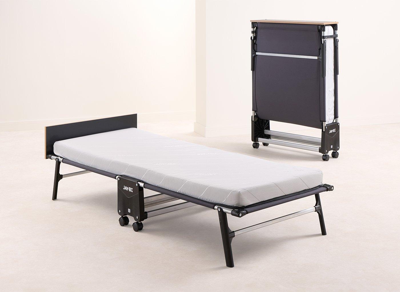 A folding bed is great if you only have guests occasionally or don’t have a spare room to use as a guest room. You can easily fold it up and store it vertically, so it doesn’t take up much space when not in use. When folded, a folding bed typically measures from around 101cm (H) x 77cm (W) x 23cm (D) to 120cm (H) x 80cm (W) x 30cm (D) - and weighs around 18.2kgs - but we recommend checking the weight and folded dimensions of the model you’re buying. When guests come to stay, it’s easy to move the folding bed into position by gliding it on its castors, then simply fold it down and add your guest bedding.
