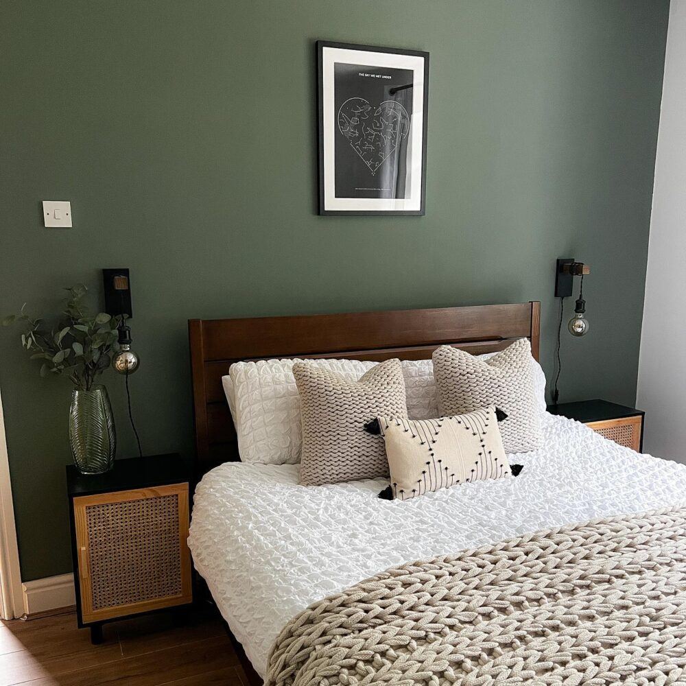 Green is a calming tone, so it’s perfect for bringing a serene vibe to your bedroom, while embracing the trend for green interiors.